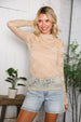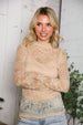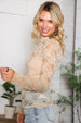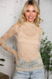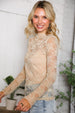This lace top is such a pretty layering piece. It’s sheer with a delicate floral pattern all over, so you can also wear it over a cami or bralette and it looks super chic. The fit is slim but stretchy, so it doesn’t feel stiff at all. We like the high neckline, it gives it that classic vibe. The sleeves are full length and soft against the skin. Cute dressed up with a skirt or under your favorite vest or jumpsuit! A simple way to elevate an outfit.