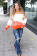 Cozy up this season with this color block knit sweater. Drop shoulders and a ribbed round neck and hemline complete this oversized fit sweater.
