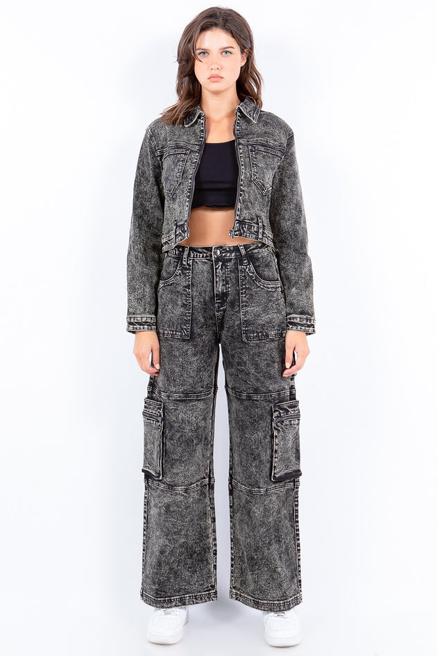 American Bazi Distressed Button Up Long Sleeve Denim Jacket