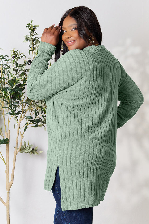And The Why Full Size Thermal Hooded Open Front Cardigan with Pockets