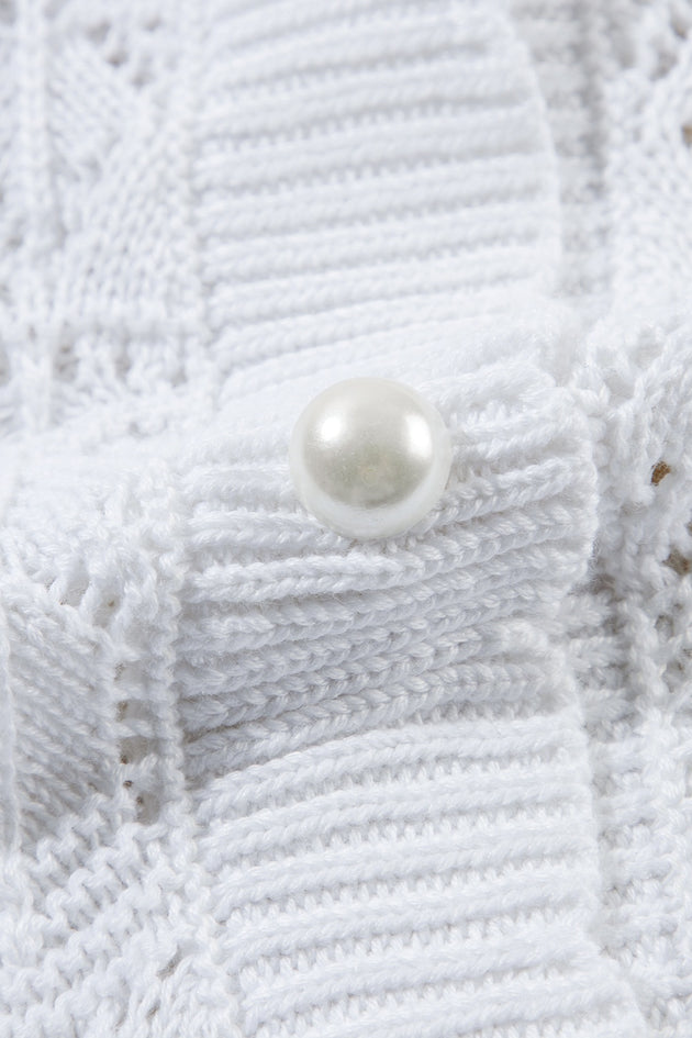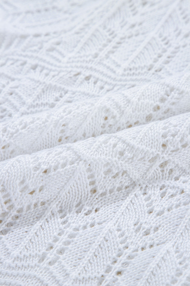 Openwork Striped Round Neck Short Sleeve Knit Top
