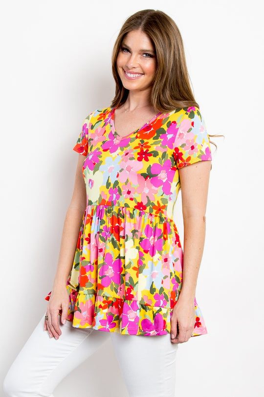 Be Stage Full Size Floral Wrinkle Free Ruffled Blouse
