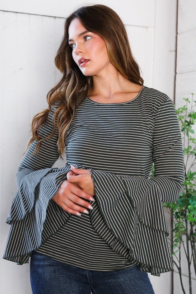 SAGE + FIG Ruffle Sleeve Washed Short Sleeve Blouse