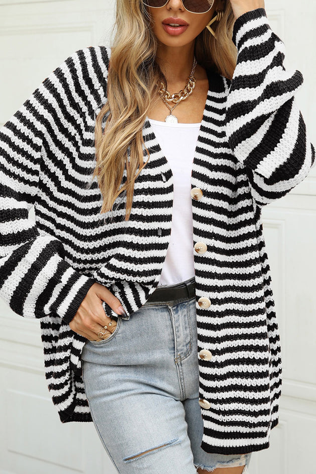 Striped Button Up Long Sleeve Cardigan
