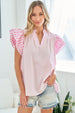 The Multi-Striped Print Relaxed Fit Blouse is a trendy and stylish top that boasts a variety of design elements, including a ruffled banded split neckline, shirred yoke, and flutter sleeves. This blouse exudes a blend of sophistication and playfulness, making it a versatile piece for various occasions. The ruffled neckline and tiered flutter sleeves add a touch of femininity and movement to the blouse, while the shirred yoke offers a subtle texture and detail. With its relaxed fit design, this blouse ensures both comfort and style, making it perfect for everyday wear or dressed-up looks. Embrace the chic and contemporary aesthetic of the Multi-Striped Print Relaxed Fit Blouse and elevate your wardrobe with a statement piece that exudes elegance and charm.