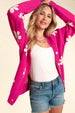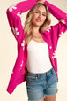 The Daisy Floral Button Down Long Sleeve Cardigan is a charming and versatile piece for your wardrobe. Its delicate daisy floral print adds a touch of whimsy and femininity to your look. With a button-down design and long sleeves, this cardigan is perfect for layering over your outfits. The lightweight fabric makes it ideal for transitioning between seasons. Whether you're going for a casual or dressed-up look, this cardigan can easily be styled to suit any occasion. Elevate your ensemble with the lovely Daisy Floral Button Down Long Sleeve Cardigan and embrace effortless chic style.