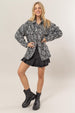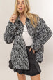 Zebra Print Snap Down Long Sleeve Shacket is a unique long sleeve jacket that combines a zebra-print design with a cardigan style. This stylish jacket is perfect with a variety of pants to add a wild and fun touch to your look. Easy to slip on and off with simple buttons, practical and stylish. This Shacket is suitable for spring and autumn, giving you a different sense of trend. Whether it's a daily outing or a casual party, this coat will make you different.