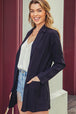 The open front long sleeve blazer is a sophisticated and versatile piece that adds a touch of polish to any outfit. With its open front design, it offers a contemporary and effortless look. The long sleeves provide extra coverage and can be rolled up for a more relaxed style. Crafted from a structured and high-quality fabric, this blazer offers both comfort and a tailored fit. Whether worn over a blouse and trousers for a professional look or paired with a dress for a more dressy occasion, the open front long sleeve blazer is a versatile and essential addition to your wardrobe. Embrace its versatility and let it elevate your style with its sleek and polished silhouette.