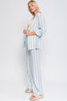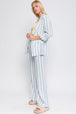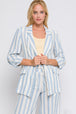 The linen woven striped blazer is a chic and sophisticated piece that adds a touch of elegance to your wardrobe. Made from lightweight and breathable linen fabric, this blazer is perfect for layering over outfits during warmer seasons. The striped pattern lends a stylish and polished look, making it ideal for both casual and dressier occasions. With its tailored silhouette and classic design, this blazer offers a timeless and versatile style that can be dressed up or down. Pair it with trousers for a professional look, or with jeans for a more relaxed vibe. Elevate your ensemble with the linen woven striped blazer for a sophisticated and fashion-forward statement.