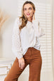 Add a touch of femininity and elegance to your wardrobe with this eyelet dropped shoulder round neck blouse. The delicate eyelet detailing creates a beautiful and intricate pattern, while the dropped shoulder and round neck design adds a relaxed and modern twist. Perfect for dressing up or down, this blouse is a versatile and stylish addition to any outfit.