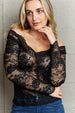 This exquisite piece is designed to accentuate your feminine charm and make a lasting impression wherever you go. This top features delicate lace fabric that creates a beautiful textured pattern, adding a touch of sophistication to your ensemble. The off-shoulder design showcases your graceful neckline, while the fitted silhouette accentuates your curves in all the right places, providing a flattering and comfortable fit. The long sleeves offer an alluring balance of coverage and allure, perfect for both daytime and evening wear. The scalloped V neckline adds a romantic and unique touch, drawing attention to your collarbone and framing your face beautifully. It's a versatile piece that can be effortlessly dressed up or down, making it suitable for various occasions. Whether you're attending a cocktail party, a date night, or a special event, this top is sure to make you the center of attention. Pair it with tailored trousers or a chic skirt for a sophisticated look, or opt for jeans and heels for a more casual yet stylish ensemble. The possibilities are endless. We've ensured that this top not only looks exquisite but also feels amazing against your skin. The premium quality lace fabric is soft and breathable, allowing you to move with ease and comfort throughout the day or evening. It's a timeless addition to your wardrobe that you'll cherish for years to come.