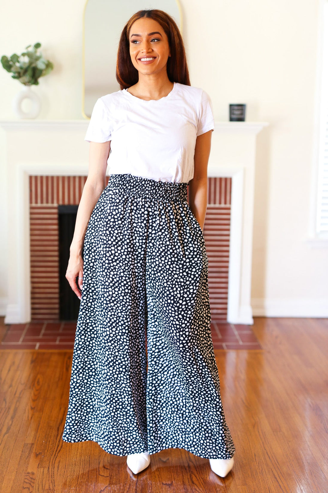 Elegant and stunning, these stunning woven palazzo pants are made with a smocked waist. With just enough stretch and a silky feel, slip on these comfy and versatile bottoms for the weekend or the office.