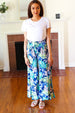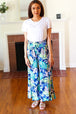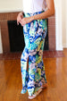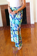 Get your boho chic style on with these stunning tropical palazzo pants made with side slits, a smocked waist and front adjustable tie. With just enough stretch and a silky feel, slip on these comfy multicolor print bottoms for the weekend, office or next vacay.