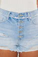 Distressed Button Fly Denim Shorts are a trendy and versatile addition to your summer wardrobe. The distressed detailing adds a touch of edgy appeal to the shorts, giving them a cool and casual vibe. The button fly closure offers a stylish and unique detail that sets these shorts apart. These shorts can be easily dressed up with a blouse and sandals or dressed down with a graphic tee and sneakers. Perfect for a day out with friends or a casual weekend getaway. Overall, Distressed Button Fly Denim Shorts are a must-have piece for those who love to add a touch of trendiness to their summer outfits.