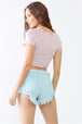 Distressed ripped denim shorts are a trendy and edgy wardrobe staple that adds a cool and casual vibe to your summer style. The distressed detailing, featuring rips and frayed edges, creates a worn-in and fashionable look. These shorts are perfect for showcasing your laid-back and adventurous side while staying comfortable and stylish. Pair them with a graphic tee and sneakers for a relaxed daytime look or dress them up with a blouse and heels for a night out. The versatile nature of distressed denim shorts allows for endless styling options to suit your taste. Embrace the effortless and chic appeal of distressed ripped denim shorts for a trendy and playful look this season.