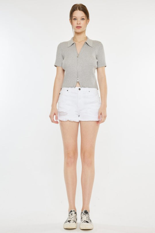 Kancan Full Size High Rise Raw Hem Denim Shorts