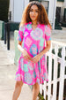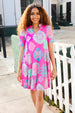 Turn heads this spring with this striking abstract print dress that can be worn with flats, canvas shoes or ankle boots. With a frill notch neck, short sleeves, plenty of swing and side pockets, this silky dress will be your fav spring staple!