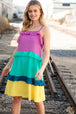 Make a romantic statement with this fuchsia shoulder strap midi dress with lining. Side pockets and ruffle frill details complete the stylish look. Pair with sandals, flats or heels.