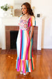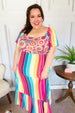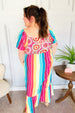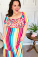 Feeling Bold Fuchsia & Teal Striped Medallion Crochet Print Dress