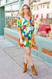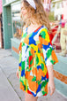 Step out in style wearing this floral dress featuring a V neck and elbow length sleeves. Packing in a lot of fashion, this vibrant babydoll dress is perfect for warming weather.