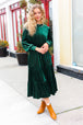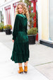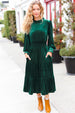 Holiday season exudes off this classy and head turning tiered dress. Made with velvet fabric and side pockets, this dress offers multiple winter trends with a mock neck, smocked long bubble sleeves and a smocked waist. Simple elegance that can be worn for years to come!