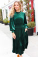 Smocked Waist + Smocked Long Bubble Sleeves + Mock Neck + Velvet