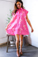 Okay, how fun is this dress? We’re loving the bright hot pink color — it really pops, and the sequin martini glasses give it just the right touch of sparkle (but not too much). The fabric is a crisp cotton. It is sleeveless with a cute cuffed sleeve detail, so it's super breathable and easy to wear even on warm days. It’s a little oversized on purpose, so you’ll have that relaxed but still structured fit. This one just kinda makes you smile — and yes, it’s totally Sunday-brunch approved.