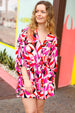 Highlight your romantic side with this multicolor geometric surplice flared shorts romper. With three quarter bubble sleeves and side pockets, get ready to look stunning.