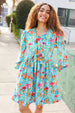 With a trendy ribbon bow tie front, this woven babydoll dress with stunning new spring colors features long puff elastic bubble sleeves and side pockets.