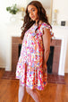 Donning a unique geo print design, this round neck dress with a ruffle hemline and flutter sleeves is the perfect addition to your summer wardrobe. Side pockets, buttery smooth, stretchy knit and plenty of swing complete this stunner.