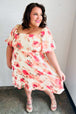 Create effortlessly classic style wearing this fully lined elastic waist puff short sleeve chiffon dress designed with a square neck. The beautiful coral floral print stand out makes this dress an eyecatcher.