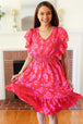 Look more than lovely in this short flutter sleeve fit & flare floral print midi dress. With a smocked waist, a v neck and side pockets, this stunning dress will be your go-to this spring and summer.