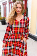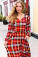 Look stunning in this plaid print V neck fit & flare dress complete with shoulder ruffle detail, long bubble sleeves, and cozy side pockets. Layer with a denim jacket or wear solo for a casual and stunning look.
