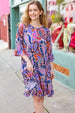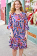 Fall in love with this beautiful paisley floral print midi dress featuring a three quarter ruffle sleeves, and a ruffle hem. With a flattering drape and side pockets, wear for any occasion, day or night!