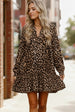 Make them stare in this fierce leopard print dress! The flowy fit and tiered hem give it that effortless, flirty feel while the long sleeves keep it comfy and chic. The collared v neck gives it a polished look. It even has pockets! Perfect with boots, heels, or sneakers.
