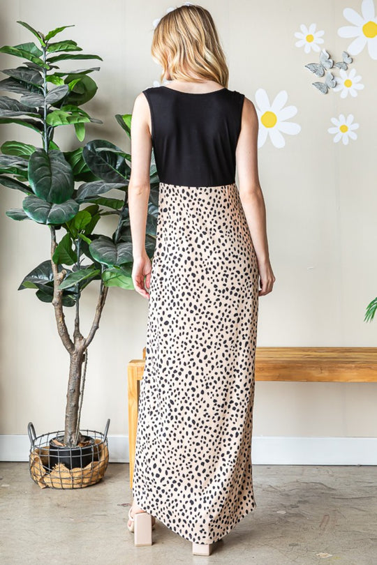 Heimish Full Size Slit Animal Print V-Neck Wide Strap Dress