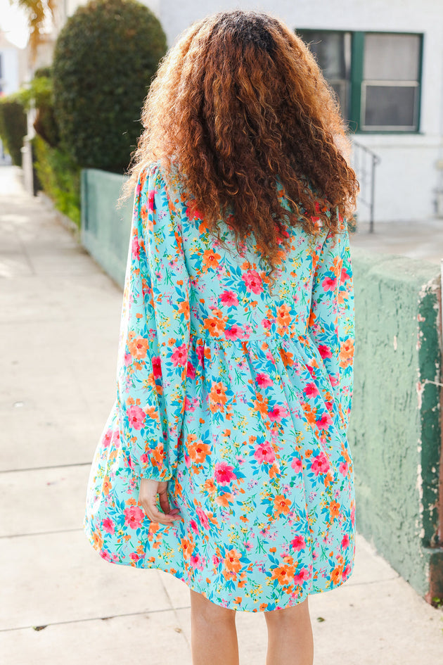 Feeling Femme Aqua Floral Ribbon Bow Tie Babydoll Dress Regular price $28.99