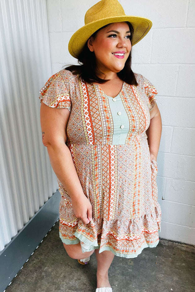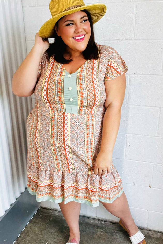 Sale                                       Sage Boho Floral Button Detail V Neck Ruffle Dress Sale price $8.99Regular price $16.95