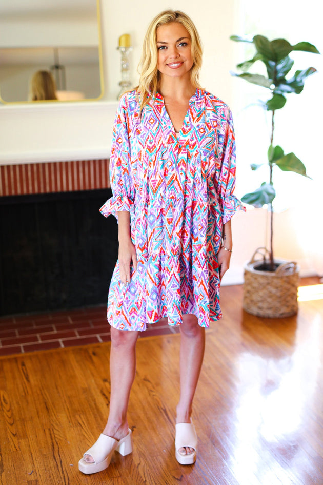 Remember Me Blue & Fuchsia Geo Print V Neck Dress Regular price $25.99