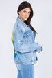 The Painted Back Distressed Denim Jacket is a unique and edgy addition to your wardrobe. Featuring a distressed denim fabric with a painted design on the back, this jacket exudes a cool and artistic vibe. The distressed details add a rugged and worn-in look, perfect for adding a touch of personality to your outfit. Pair it with a basic tee and jeans for a casual and stylish look, or layer it over a dress for a trendy edge. This jacket is versatile and can be styled in various ways to suit your individual taste. Stand out with this bold and fashion-forward denim jacket that will elevate your overall look with its distinctive design.