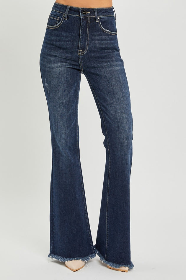 Sold out                  RISEN High Waist Raw Hem Flare Jeans Regular price $72.99
