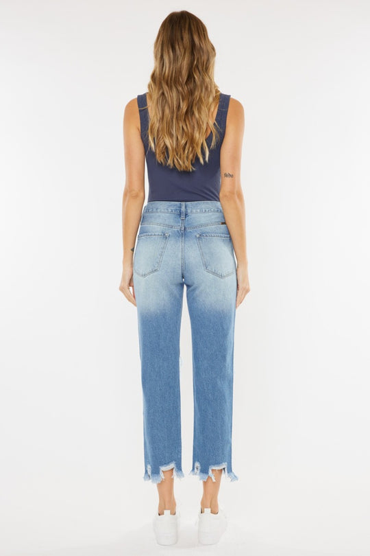 Kancan High Waist Chewed Up Straight Mom Jeans