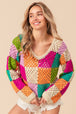 This multi-color checker open knit scoop neck top is a stylish and versatile addition to your wardrobe. The vibrant checker pattern adds a pop of interest to any outfit. The scoop neck design is flattering and comfortable to wear. It's perfect for layering or wearing on its own, making it a great choice for any season. The open-knit material adds a unique texture and breathability to the top. Pair it with your favorite bottoms for a chic and trendy look.
