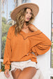 The Textured Exposed Seam Drop Shoulder Knit Top is a stylish and modern piece that features a textured fabric and exposed seam detailing. With its drop shoulder design, this top offers a relaxed and casual look that is perfect for everyday wear. The exposed seams add a unique and edgy touch to the overall design, giving it a contemporary vibe. Pair this knit top with jeans or leggings for a comfortable yet chic outfit. Embrace the effortless and trendy style of the Textured Exposed Seam Drop Shoulder Knit Top for a versatile and fashionable wardrobe choice.