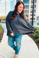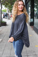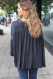 Make a fashion statement this fall while staying cozy in this super soft v neck yoke modal knit top. With long banded bubble sleeves, pare with a jean jacket for autumn.