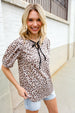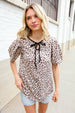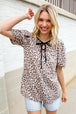 Notched Front Tie + Animal Print + Short Sleeves