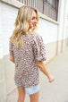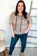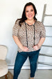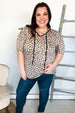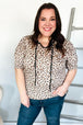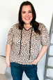 Step into spring with this whimsical yet bold animal print knit top featuring a notched front tie design and short sleeves. This stunning top can be tucked in or tucked out.