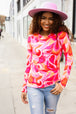 Perfect for Valentines or early spring, this lightweight fitted long sleeve pullover made with buttery smooth knit and heart print is sure to catch glances!