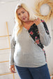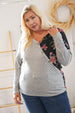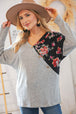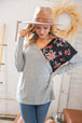 Stun in this soft Hacci knit surplice top featuring decorative buttons and a color block floral print design. Cozy up this fall in this adorable top.
