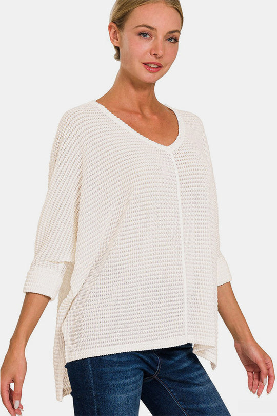 Zenana Full Size Round Neck High-Low Slit Knit Top